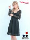 オールレース長袖ハイウエスト切替プチプラ膝丈フレアドレスワンピースのカラーバリエーション