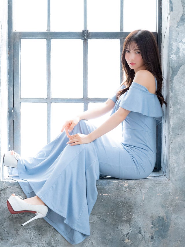 4. ロングドレス 肩あき タイト ストレッチ フリル 胸元カバー 高身長 ワンカラー 大きいサイズ XL XXL ピンク キャバドレス (横田未来着用) [tk-ld25121-h]