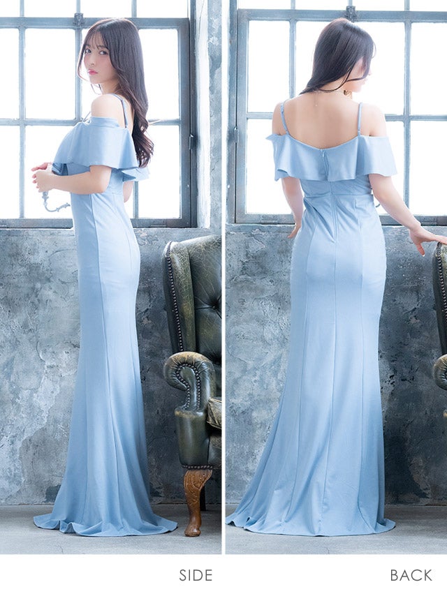 ロングドレス 肩あき タイト ストレッチ フリル 胸元カバー 高身長 ワンカラー 大きいサイズ XL XXL ピンク キャバドレスのサイズ表