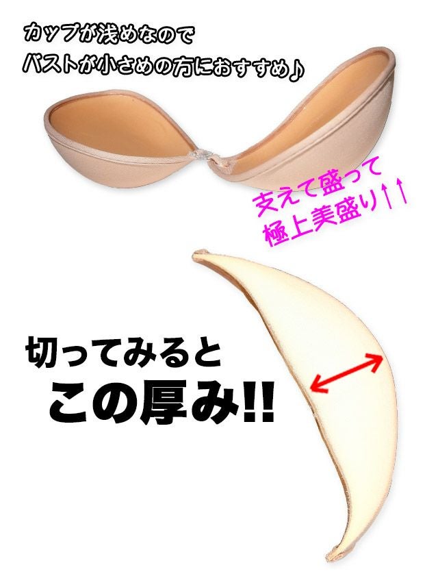本物のお胸を意識して作られたプニプニとした感触で、バストに直に接着して使う、最もポピュラーでマストなタイプのインナーブラ。 こちらは「万能なインナーブラ」としてお馴染みで、オフショルダー・オープンバックなど肩や背中にストラップが見えては困るドレスを着こなすのに最適です◎ 柔らかい質感としっかりとした厚みがあり、簡単に寄せて上げることができるのでバストアップもお手の物です!