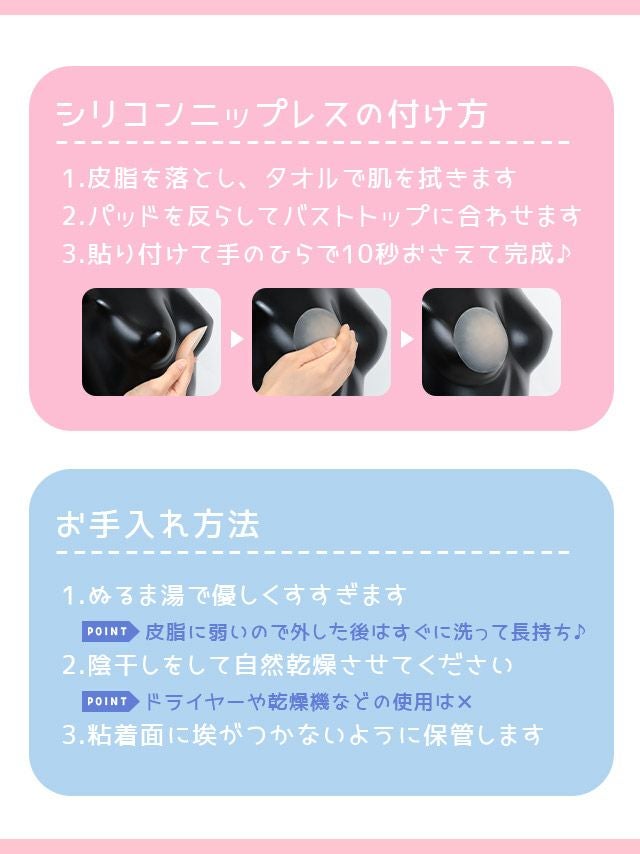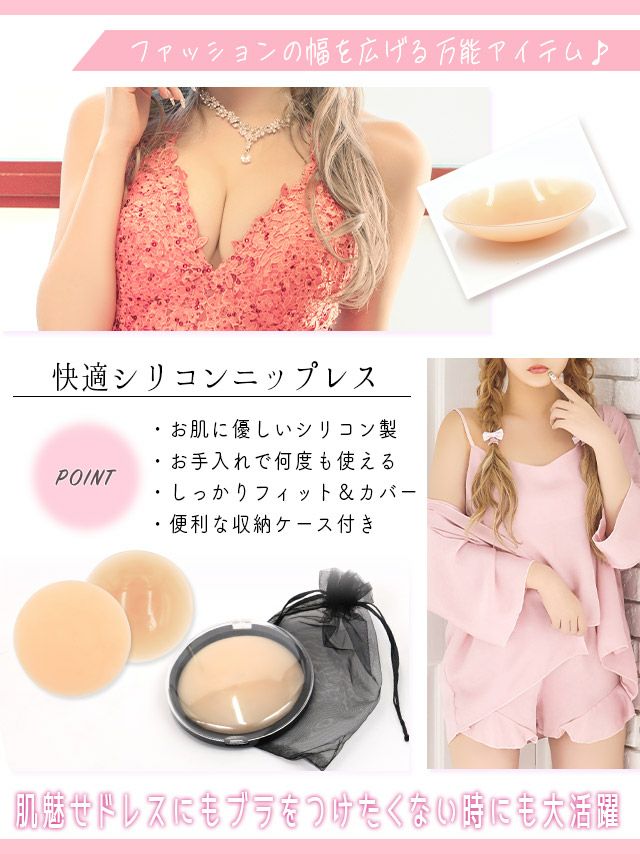 最後にシリコンブラや貼るタイプはお肌が不安、そんな方には【布に貼る粘着ブラ】。 ムレるのが苦手、お肌が弱い、かゆくなっちゃう…そんな方にオススメなのがこちらの布に貼るタイプ。 ドレスのバスト部分や布のブラに貼ることが出来るアイテムで、お肌を気にせずボリュームアップが出来るんです♪