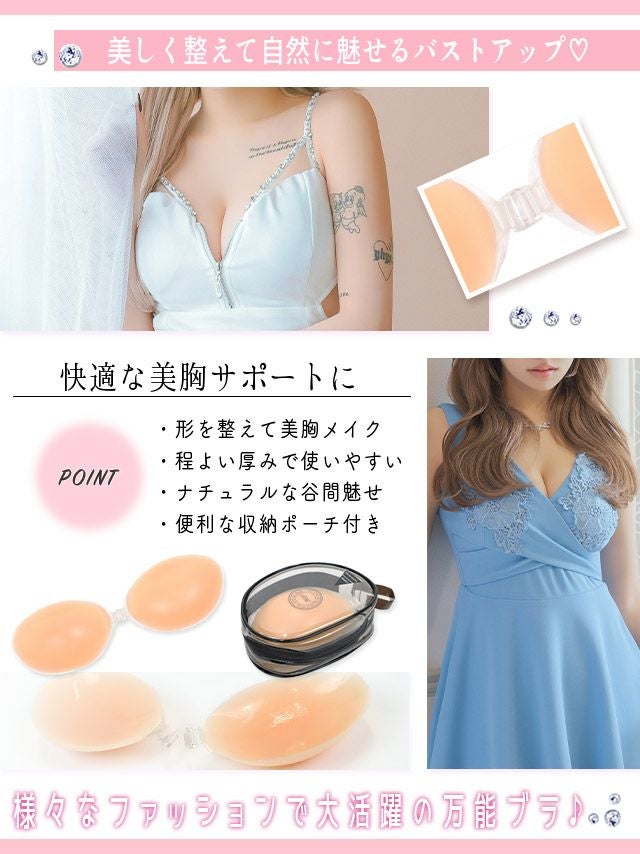 インナーブラは、キャバ嬢さんにとっては欠かせないアイテムです!!オフショルダーや背中の開いたキャバドレスを着こなせたり、一瞬で簡単にバストアップをする事が出来ます!胸を大きく見せる事で全体的なスタイルUP効果にもなり男性の目線を釘付けに出来ます!tikaのシリコンブラで谷間をメイクして男性を魅了するようなスタイル抜群なキャバ嬢になりませんか?