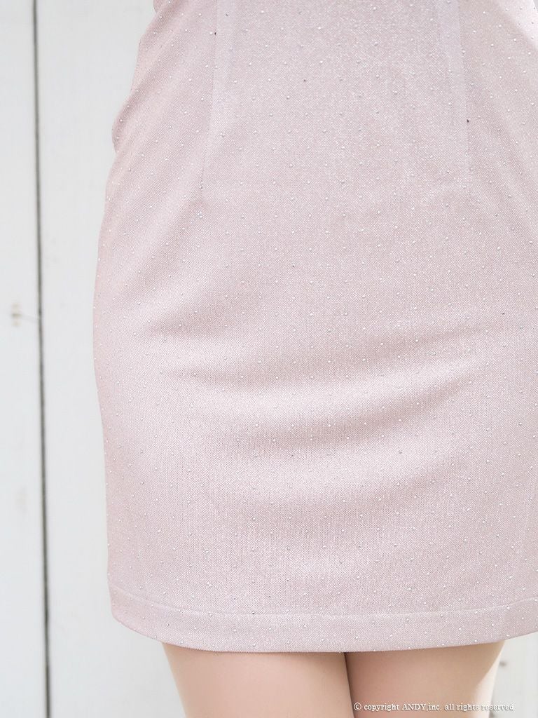 キャバドレス an アン 高級キャミソールフロントジップシフォンスリーブラメストーンショルダービジュータイトミニドレス