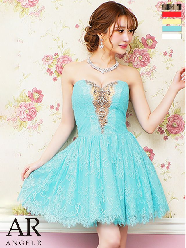 キャバドレス ミニドレス [Angel-R/エンジェルアール] 高級総レース×デザインビジューベアトップフレアミニドレス