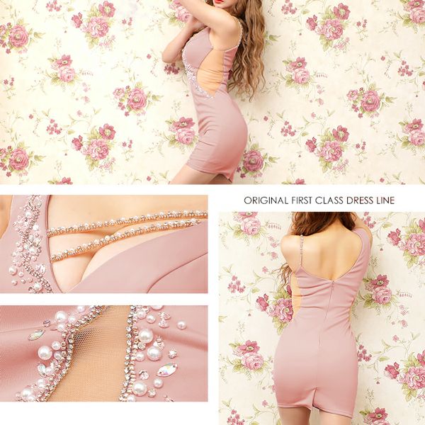 5. [Angel-R/エンジェルアール] 高級コラボ限定カラー★カッティングビジューラインキャミソールくびれタイトミニドレス