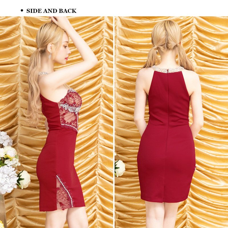 4. [Angel-R/エンジェルアール] 高級 ホルターネック フラワービジュー シースルー バストカット 谷間魅せ タイトミニドレス