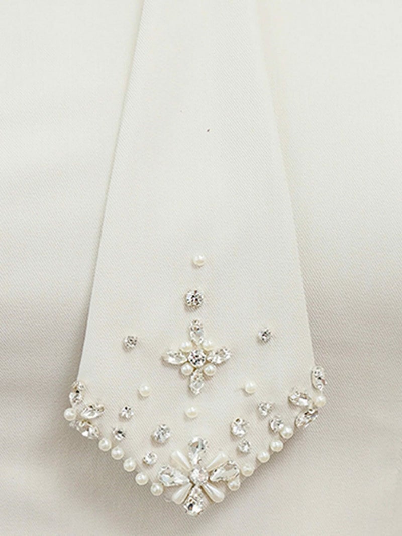 3. [Angel-R/エンジェルアール] 高級 ブランド フレアミニドレス シンプル ベアトップ ネクタイデザイン プリーツスカート ビジューパール モード ワンカラー