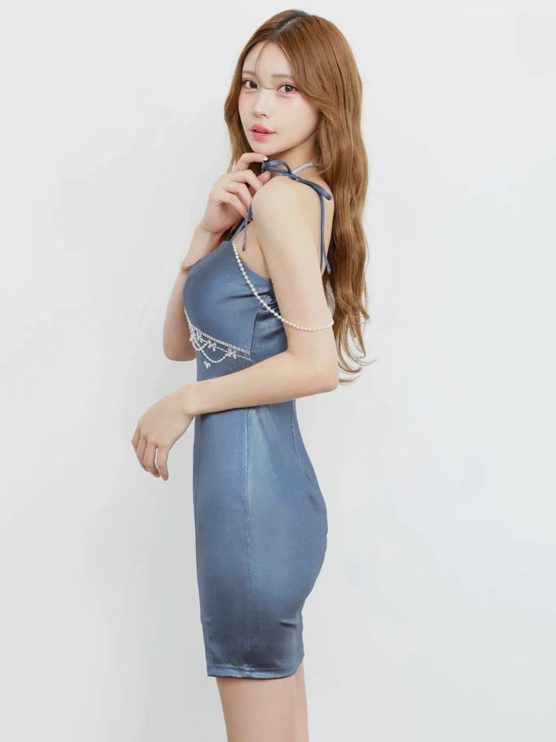 4. [Angel-R/エンジェルアール] 高級 ブランド タイトミニドレス 谷間 キャミソール ショルダーリボン パールチェーン バストカット ビジュー