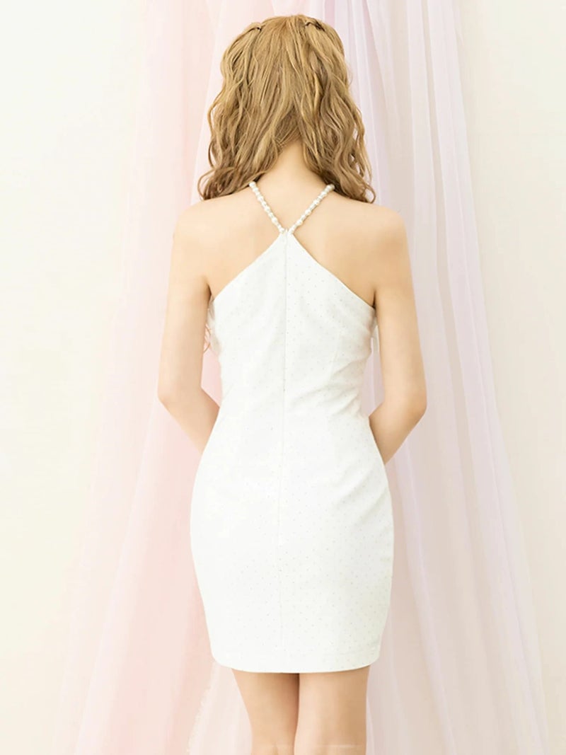 パール×フリルで女子力アップ☆ [Angel-R/エンジェルアール] 高級 パールホルターネック 胸元フリル バストシースルー 谷間魅せ タイトミニドレス