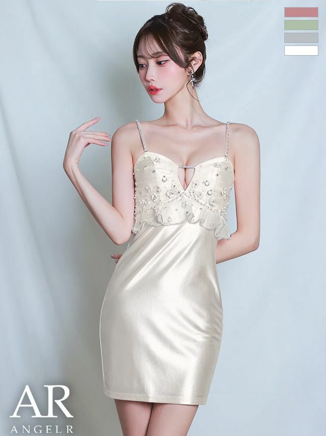 贅沢なバストデザインで華やかに♡ [Angel-R/エンジェルアール] 高級 ブランド タイトミニドレス 谷間 キャミソール 2way バストカット フラワー刺繍 パール フリル