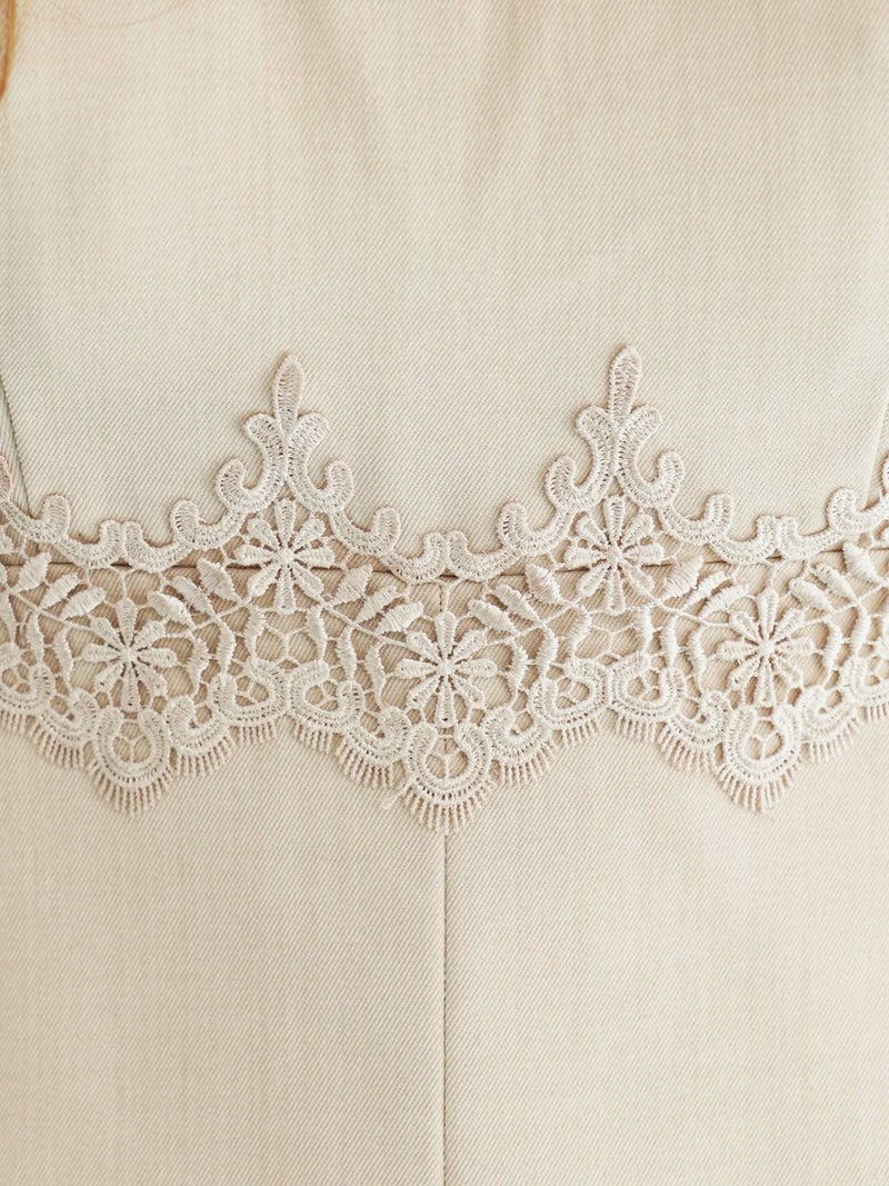 5. [Angel-R/エンジェルアール] 高級 ブランド Aラインミニドレス ノースリーブ スクエアネック ウエスト刺繍 プリーツ