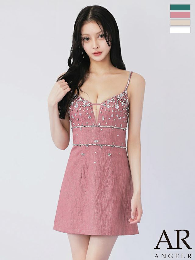 程よいフレアで美シルエットに導く♡ [Angel-R/エンジェルアール] 高級 ブランド Aラインミニドレス 谷間 キャミソール バストカット シアー スパンコール ビジュー