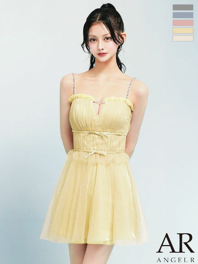 ふんわり女性らしさを纏う♡ [Angel-R/エンジェルアール] 高級 ブランド フレアミニドレス ビジューキャミソール チュール リボン バストカット