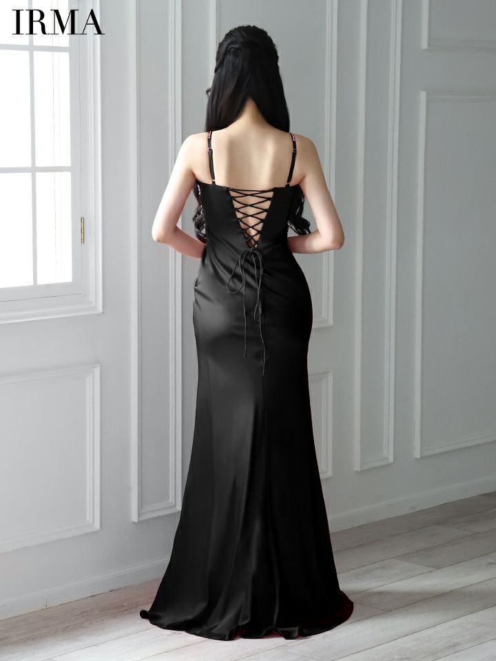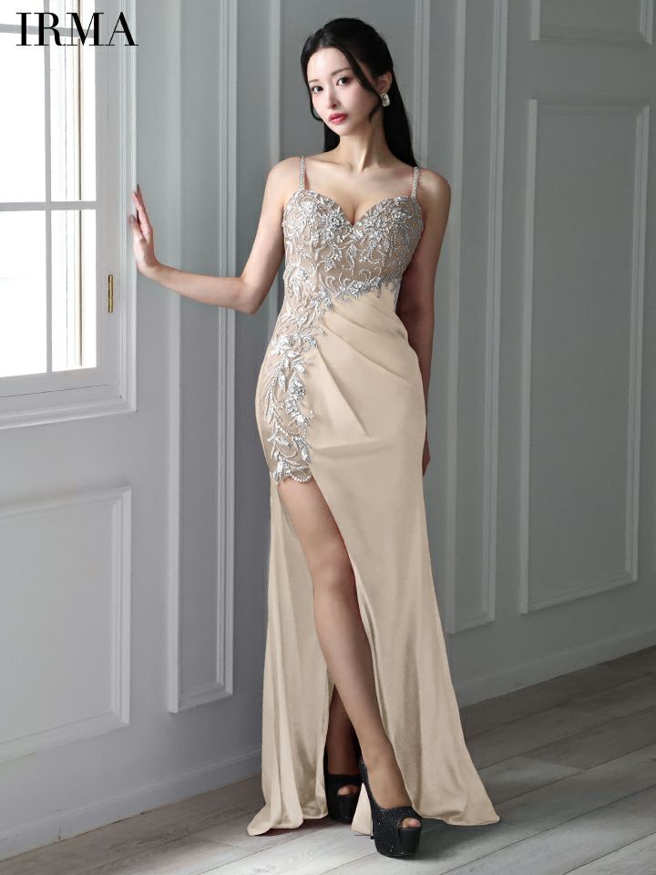 大胆な美脚魅せで視線釘付け♡ [IRMA/イルマ] 高級 ブランド タイトロングドレス キャミソール 谷間 スリット 背中魅せ ゴージャス刺繍