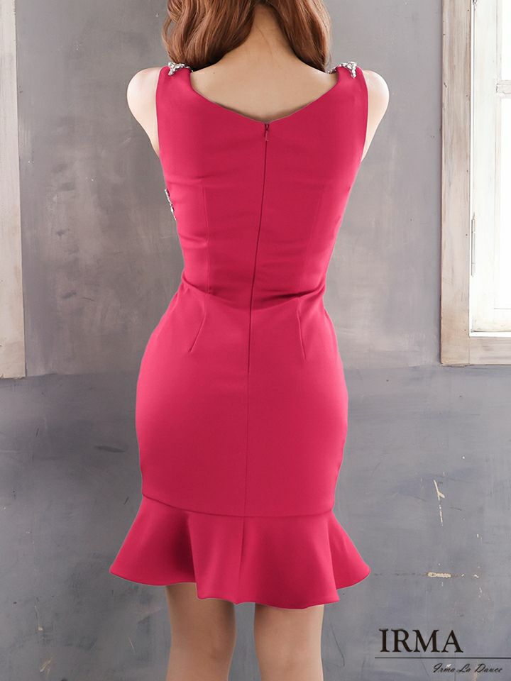 IRMA イルマ 高級バストギャザーゴージャスビジュー裾フリルキャミソールタイトミニドレス