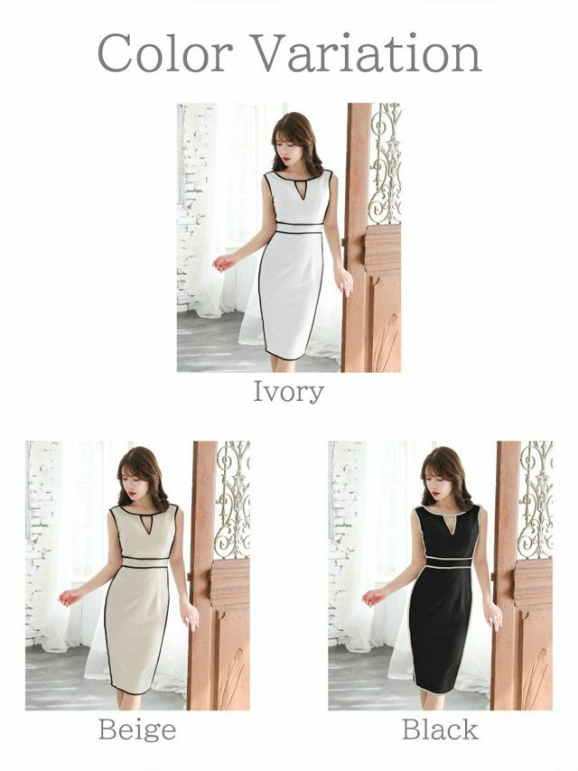 大人の余裕漂うシンプルデザイン☆ [JEANMACLEAN/ジャンマクレーン] 高級 バイカラー パイピング バストカット ノースリーブ タイト 谷間魅せ 膝丈ドレス