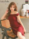 タック入りでメリハリボディに♡ [Veautt/ヴュート] 高級 ブランド タイト膝丈ドレス オフショルダー ラップ風 タックデザイン (ゆんころ着用)