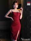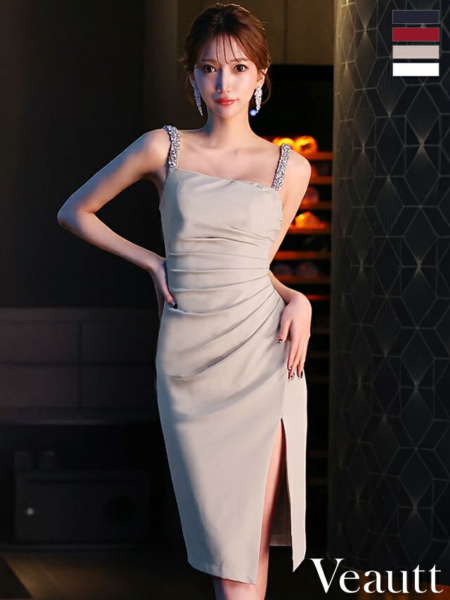 キャバドレス 膝丈ドレス Veautt/ヴュート 高級ノースリーブショルダービジュースリットワンカラータイト膝丈ドレス