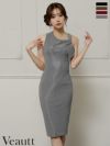 シンプルで魅せる上品ドレス♡ [Veautt/ヴュート] 高級 ブランド タイト膝丈ドレス ノースリーブ アシンメトリー リボン ラメ