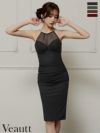 女性らしい曲線美を描く♡ [Veautt/ヴュート] 高級 ブランド タイト膝丈ドレス ホルターネック スリット デコルテシアー ビジューチェーン