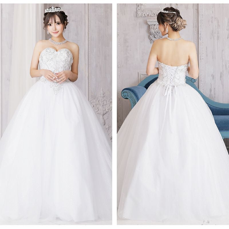 他の画像を見る ビジューが輝きヒロインになれる☆ [Angel-R/エンジェルアール] 高級 バースデーアッパービジューラボリュームチュールAラインロングドレス ¥ 86,900 税込 お気に入りに追加