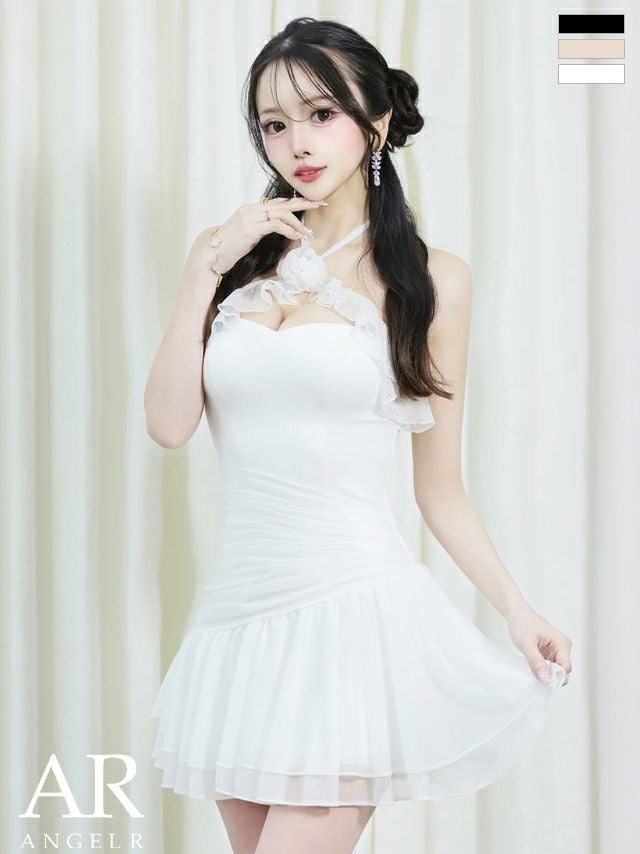 他の画像を見る 上品な色気を纏う♡ [Angel-R/エンジェルアール] 高級 ブランド フレアミニドレス 谷間 クロスホルターネック ハートカット ビジュー ウエストカット 裾フリル ローズモチーフ ¥ 31,680 税込 在庫切れ お気に入りに追加