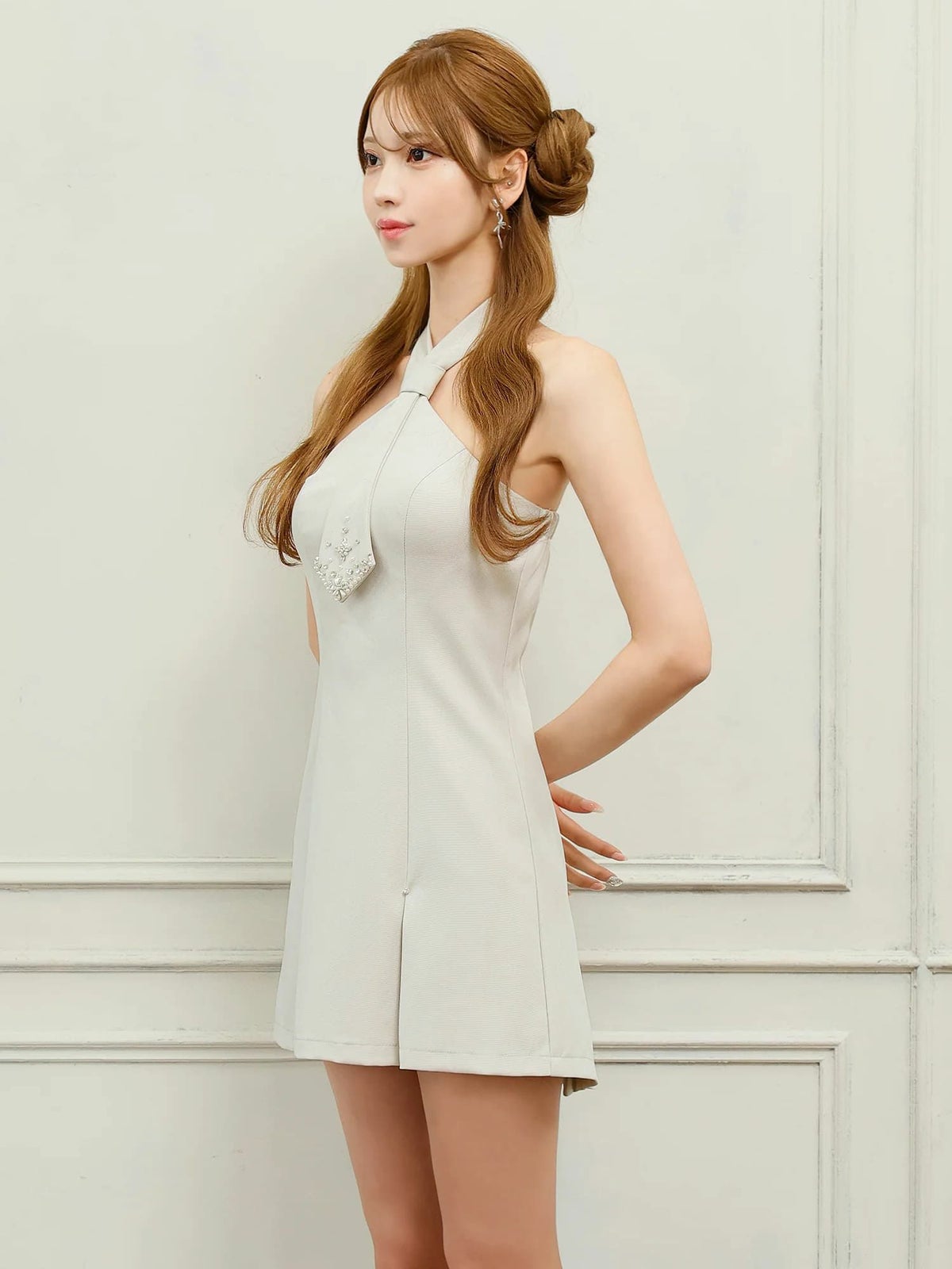 他の画像を見る さりげなく煌めくビジューが美しい♡ [Angel-R/エンジェルアール] 高級 ブランド フレアミニドレス シンプル ベアトップ ネクタイデザイン プリーツスカート ビジューパール モード ワンカラー ¥ 27,280 税込 在庫切れ お気に入りに追加