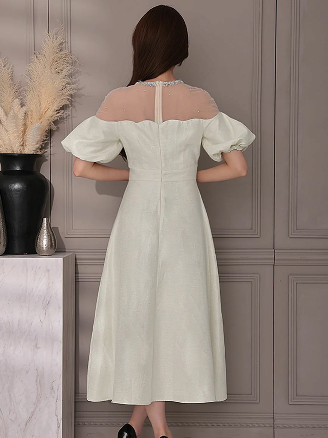 他の画像を見る エレガントな女性に演出♡ [Veautt/ヴュート] 高級 ブランド タイト膝丈ドレス ホルターネック 2way パフスリーブ付き 大人 シアー ビジュー ¥ 31,680 税込 お気に入りに追加
