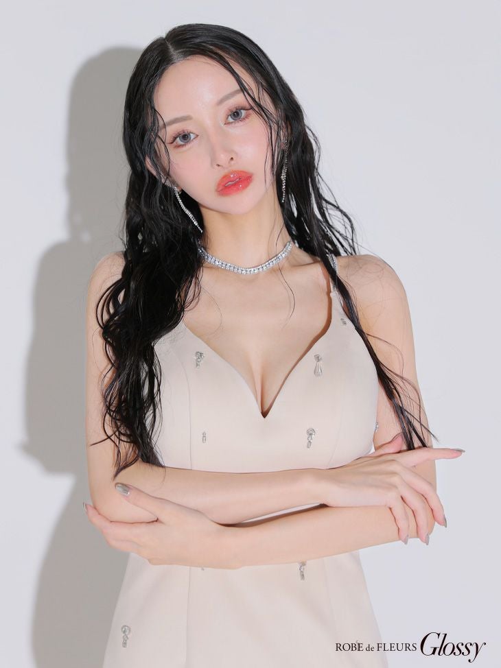 sexyなボディラインをメイク☆ [ROBEdeFLEURSGlossy/ローブドフルールグロッシー] 高級ワンカラーエレガントビジューホルターネックタイトミニドレス