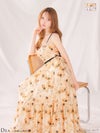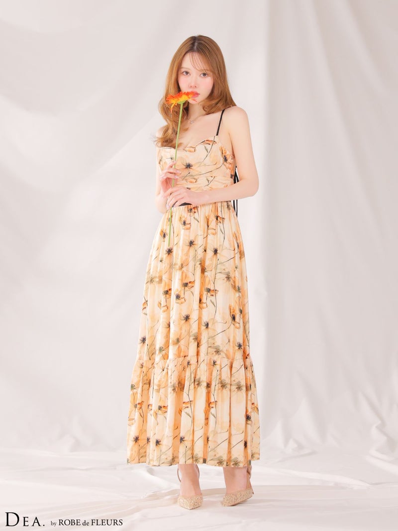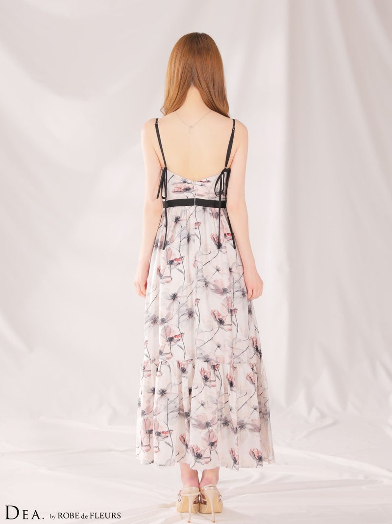 4. [DEA.byROBEdeFLEURS/ディアバイローブドフルール] 高級 ブランド Aラインロングドレス ワンピース 谷間 キャミソール 胸元ドレープ 背中魅せ フラワープリント