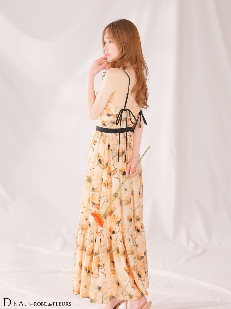 5. [DEA.byROBEdeFLEURS/ディアバイローブドフルール] 高級 ブランド Aラインロングドレス ワンピース 谷間 キャミソール 胸元ドレープ 背中魅せ フラワープリント