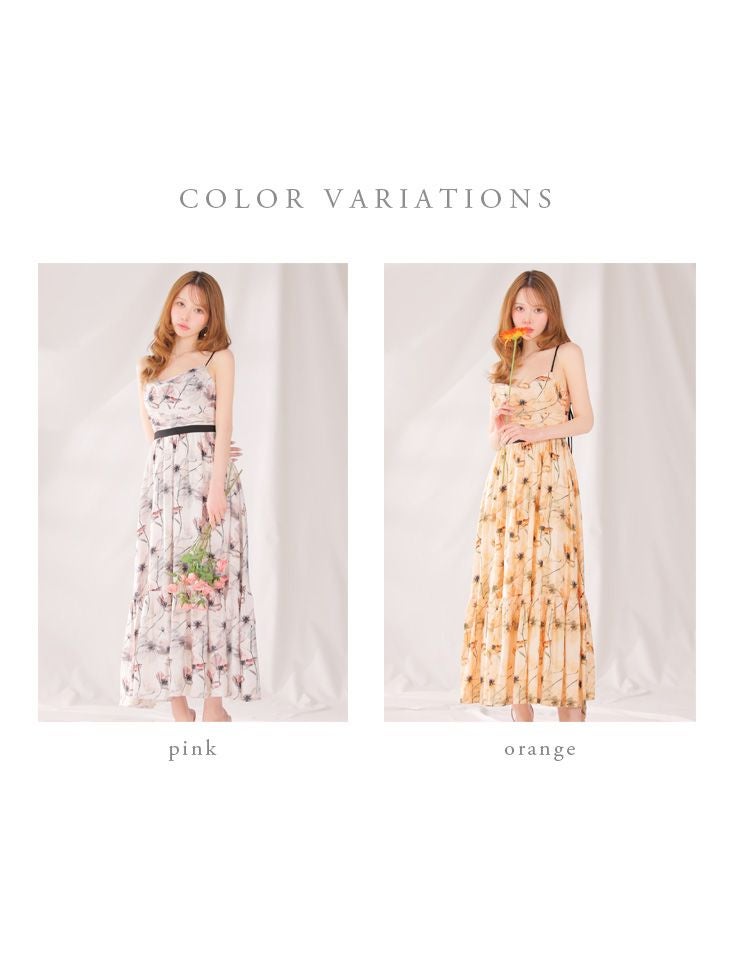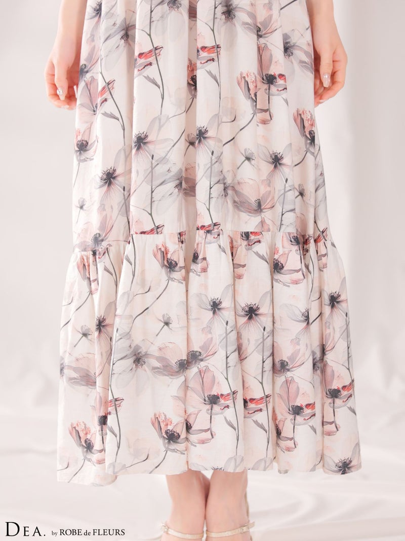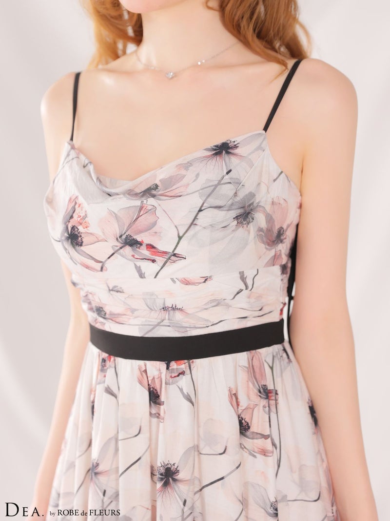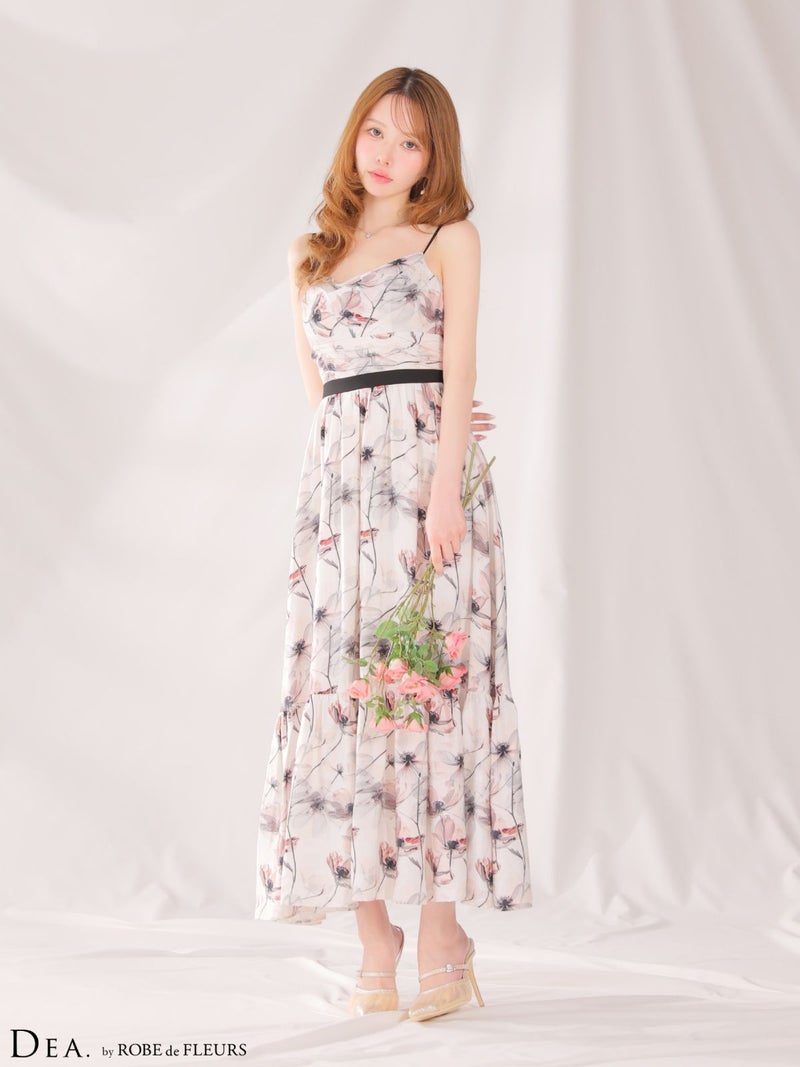 エレガントさ際立つ1着♡ [DEA.byROBEdeFLEURS/ディアバイローブドフルール] 高級 ブランド Aラインロングドレス ワンピース 谷間 キャミソール 胸元ドレープ 背中魅せ フラワープリント