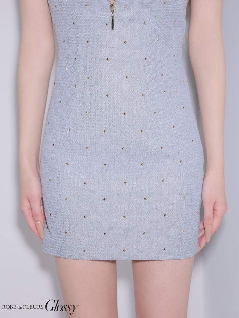 4. [ROBEdeFLEURSGlossy/ローブドフルールグロッシー] 高級 ブランド タイトミニドレス 谷間 ホルターネック 背中魅せ ジップ スタッズ ワンカラー