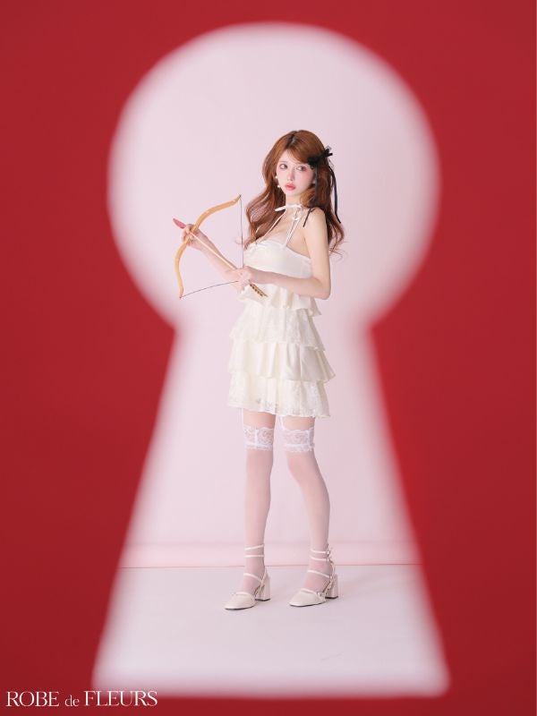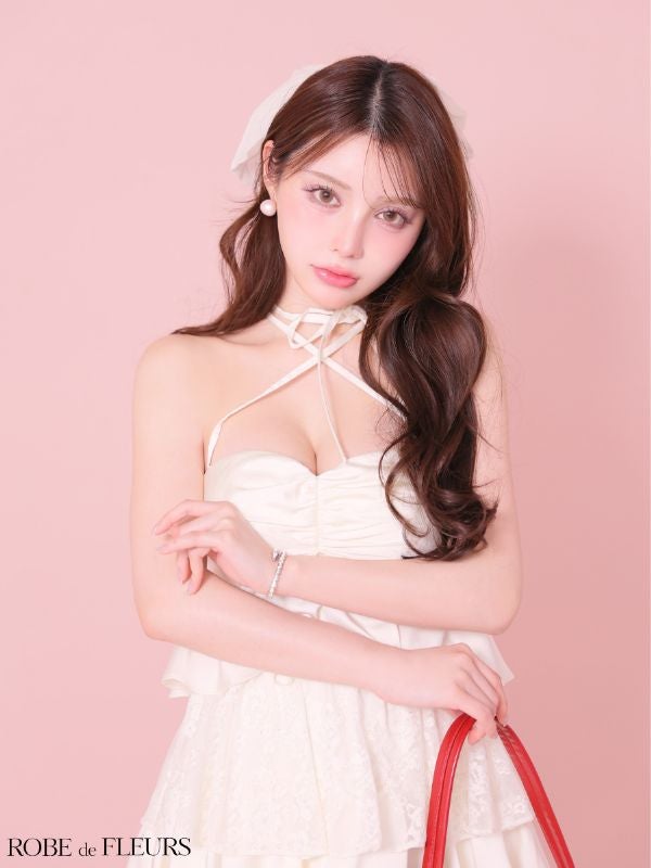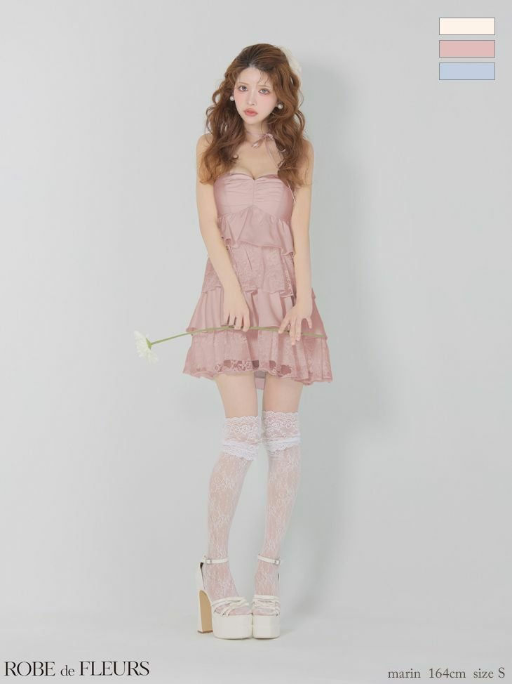 身に纏うだけで誰よりもガーリーに♡ [ROBEdeFLEURS/ローブドフルール] 高級 ブランド フレアミニドレス 谷間 ベア ティアードフリル スパンコール レース