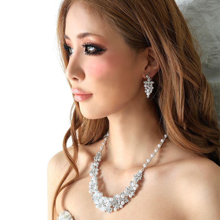 パールを散りばめたデザインが個性的♪ [Angel-R/エンジェルアール] 高級パールビジューフラワーネックレス&ピアス