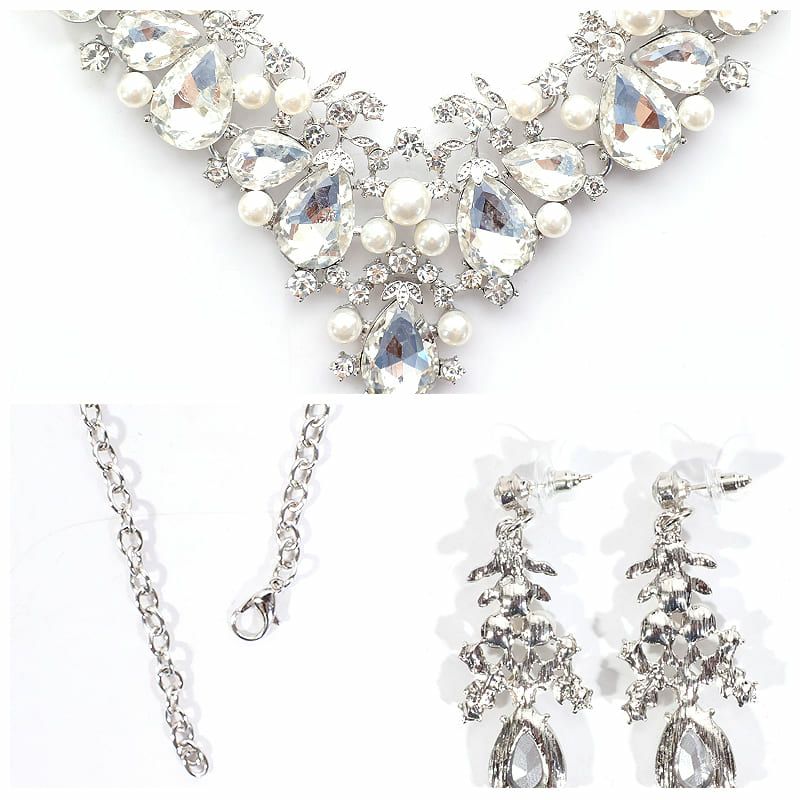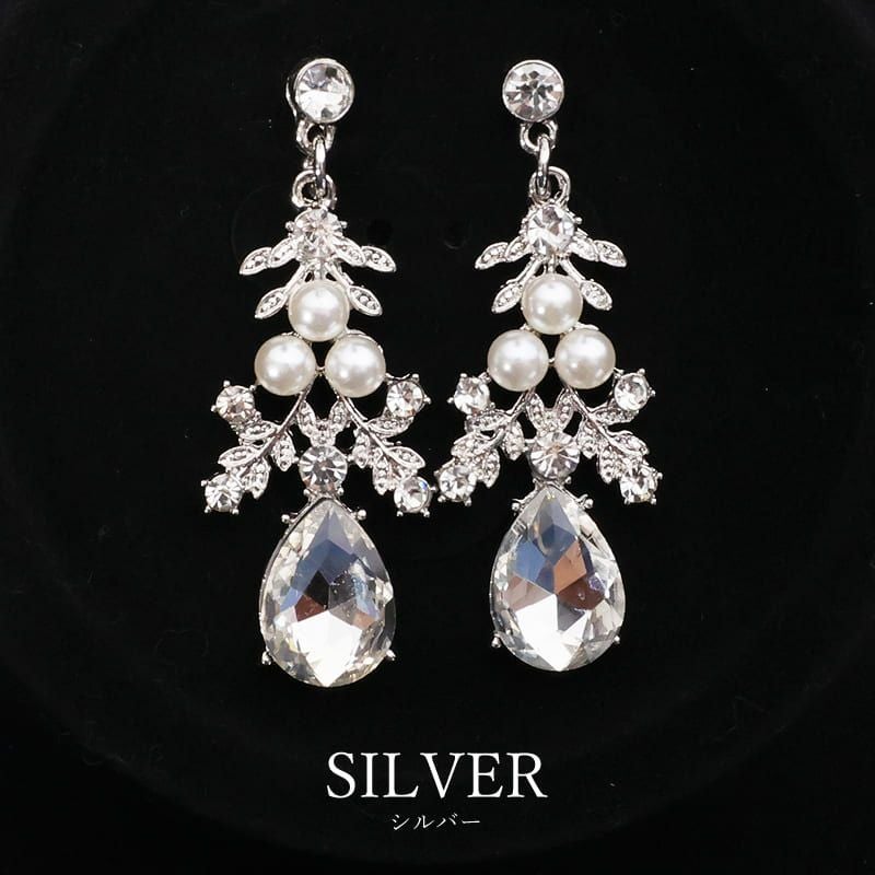 キャバアクセ キラキラ Angel-R エンジェルアール 高級リーフモチーフパールビジューネックレス&ピアスセット