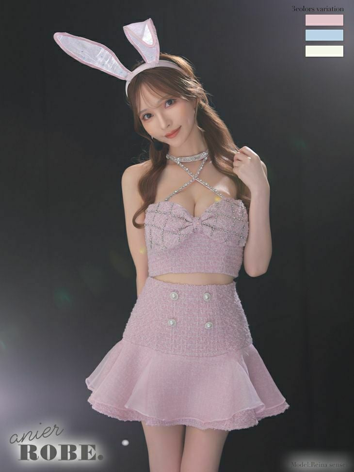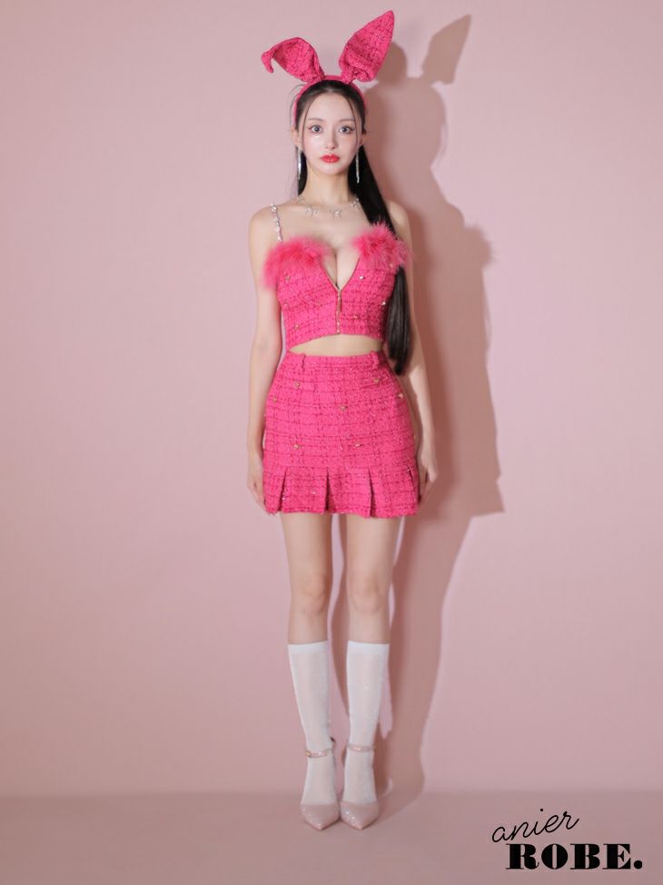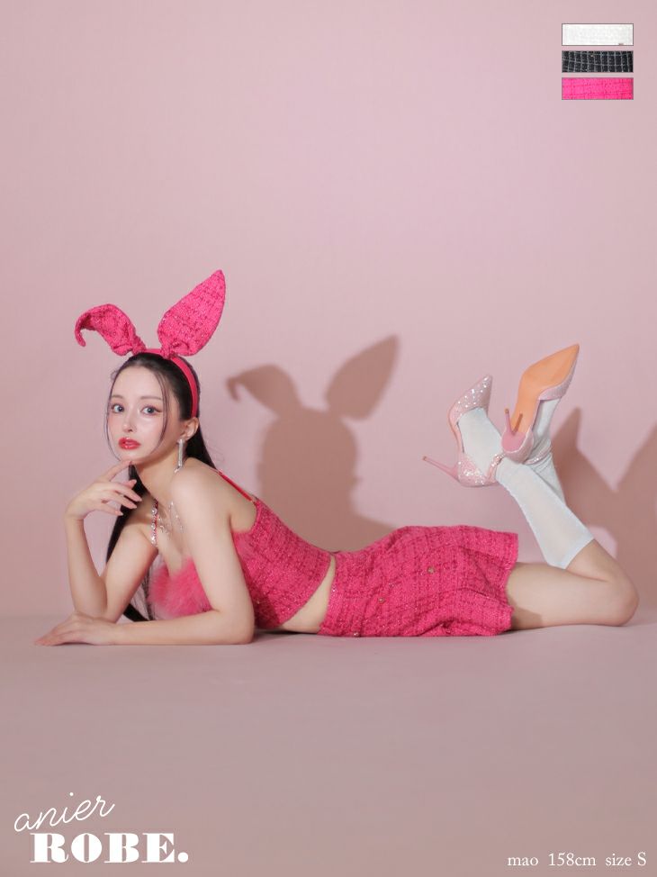 他の画像を見る 周囲と差をつけるお洒落バニー♡ [ANIER./アニエル] 高級 ブランド タイトミニドレス バニー コスプレ オフショル ツイード ジップ [ドレス/カチューシャ/チェーンベルト] ¥ 32,780 税込 お気に入りに追加