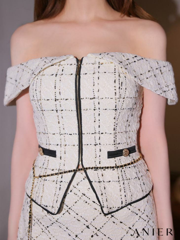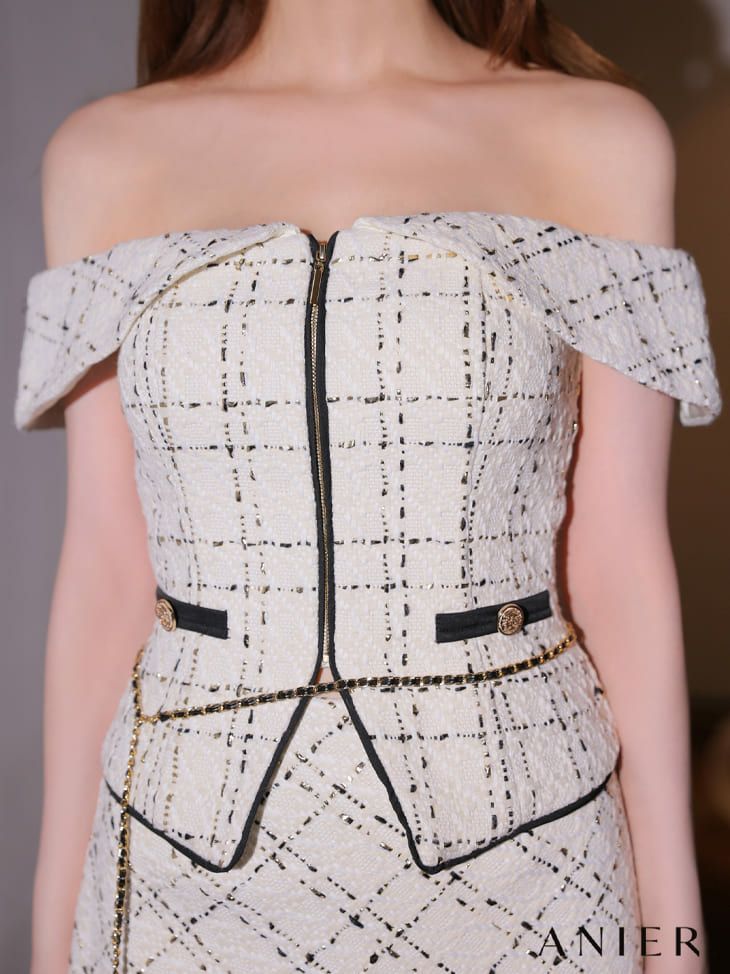 他の画像を見る ワンランク上のツイードバニー♡ [ANIER./アニエル] 高級 ブランド タイトミニドレス バニー コスプレ オフショル ツイード ジップ [ドレス/カチューシャ/チェーンベルト] ¥ 32,780 税込 お気に入りに追加
