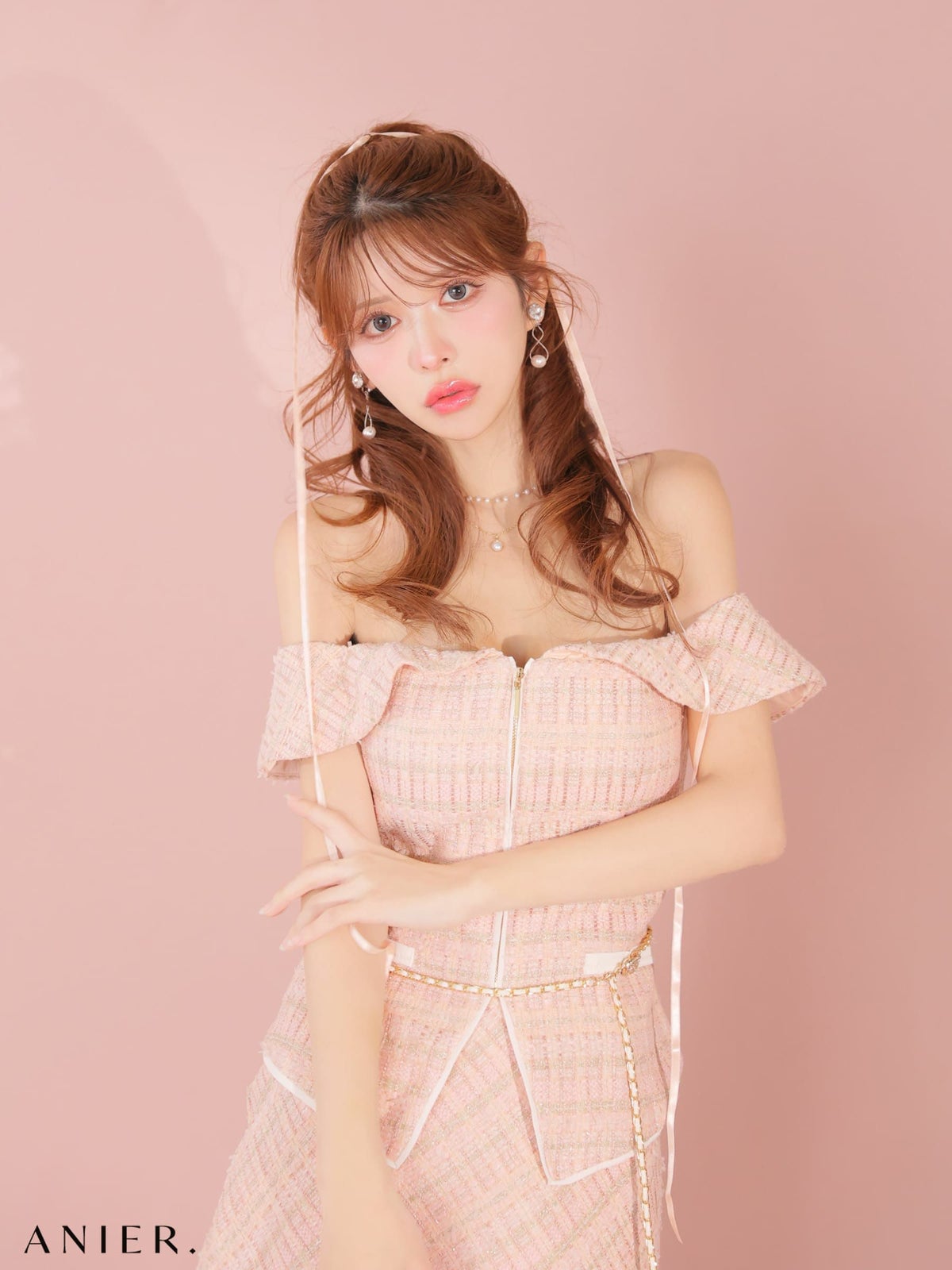 他の画像を見る 谷間をsexyに魅せるデザイン☆ [ANIER./アニエル] 高級 キャミソール ラメツイード リボンビジュー バストカット 谷間魅せ タイトミニドレス ¥ 33,880 税込 お気に入りに追加
