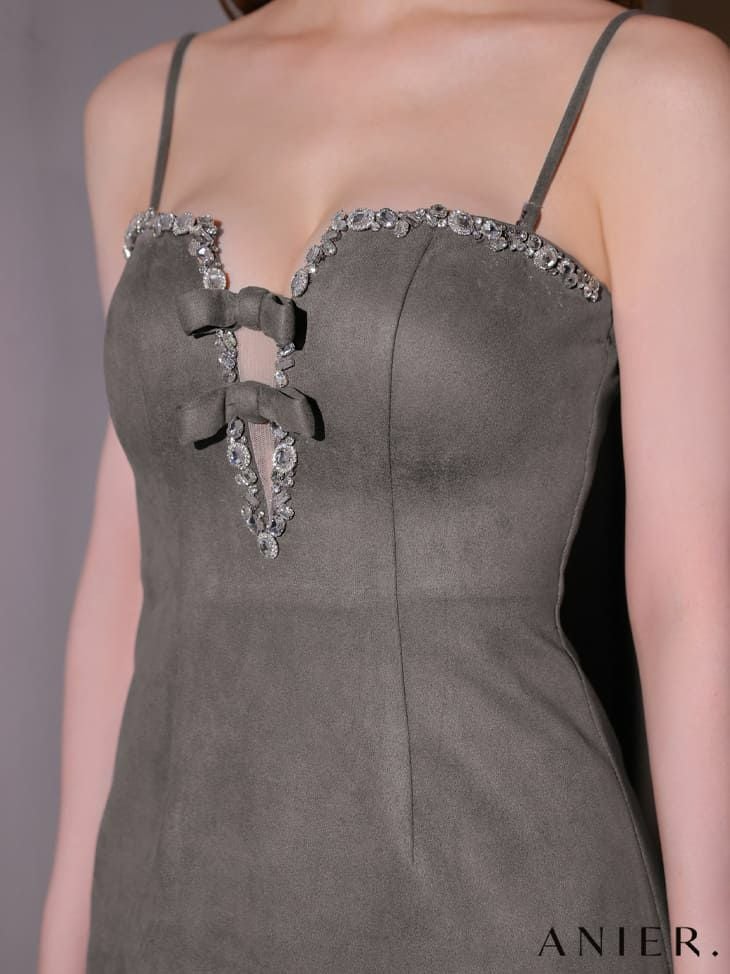 他の画像を見る ラメツイードとビジューが煌めく☆ [ANIER./アニエル] 高級 キャミソール ラメツイード リボンビジュー バストカット 谷間魅せ タイトミニドレス ¥ 33,880 税込 お気に入りに追加