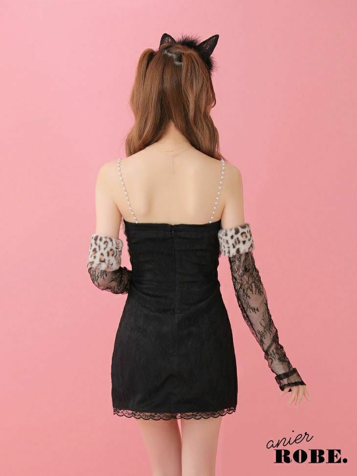 5. [ANIER./アニエル] 高級 ギャル猫豹柄レースフレアミニドレスアニマル[ドレス/カーチューシャ/アームカバー]
