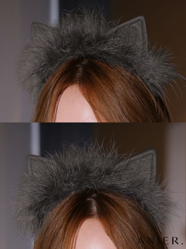 5. [ANIER./アニエル] 高級 ブランド タイトミニドレス 猫 コスプレ 谷間 キャミソール リボン ビジュー ファー [ドレス/カチューシャ]
