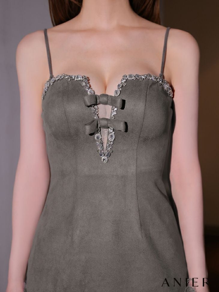 ガーリーさとセクシーさを欲張りアピール♡ [ANIER./アニエル] 高級 ブランド タイトミニドレス 猫 コスプレ 谷間 キャミソール リボン ビジュー ファー [ドレス/カチューシャ]