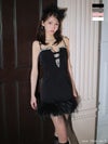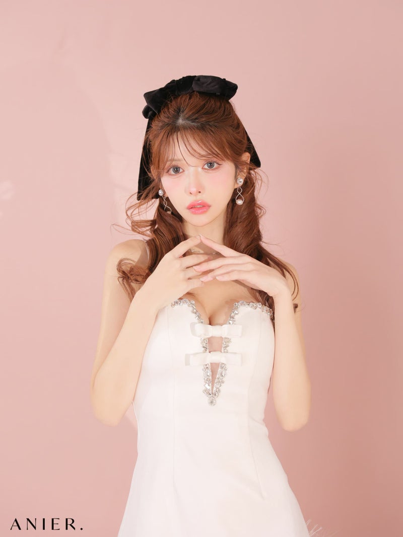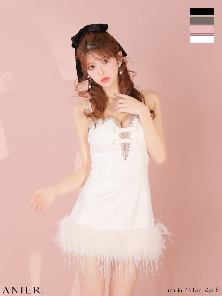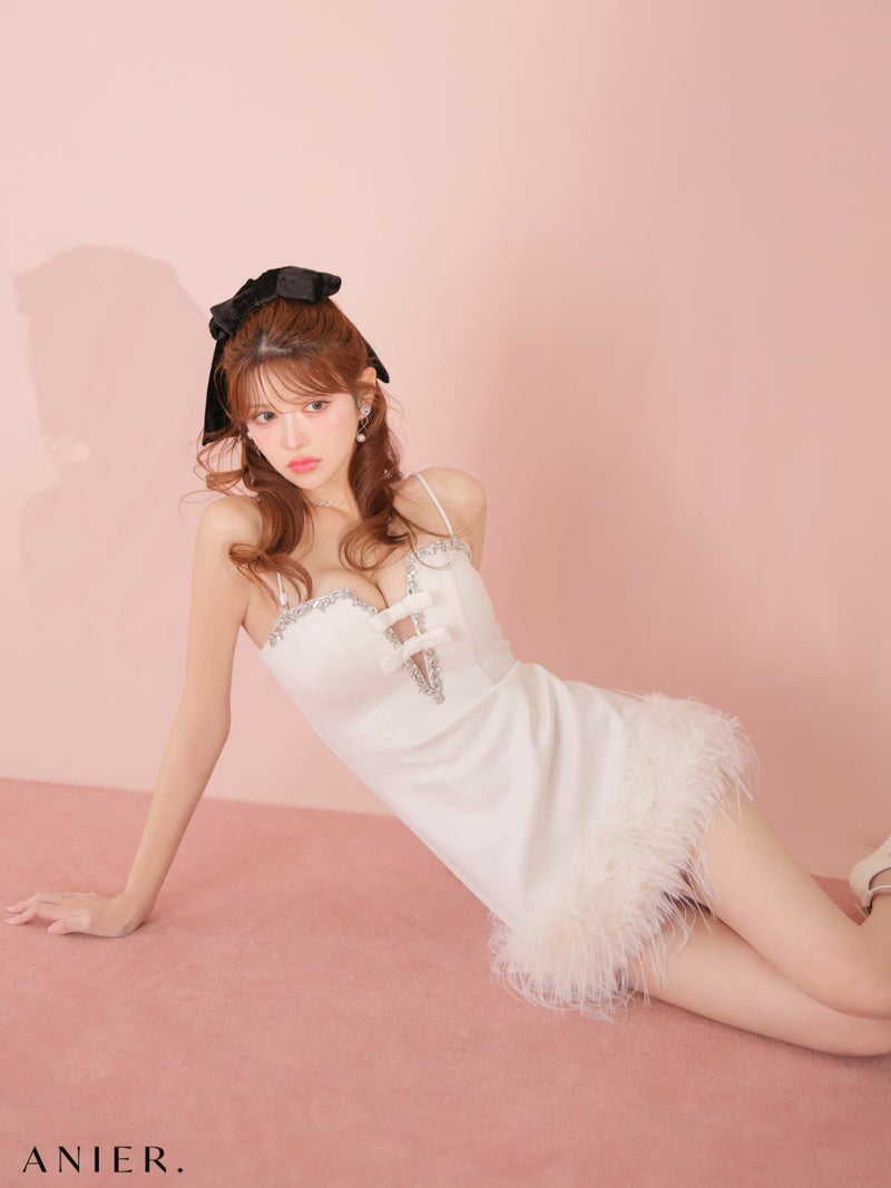 特別感溢れる1着♡ [ANIER./アニエル] 高級 ブランド タイトミニドレス 猫 コスプレ 谷間 キャミソール リボン ビジュー ファー [ドレス/カチューシャ]