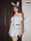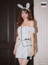 5. [ANIER./アニエル] 高級 ブランド タイトミニドレス バニー コスプレ オフショル ツイード ジップ [ドレス/カチューシャ/チェーンベルト]