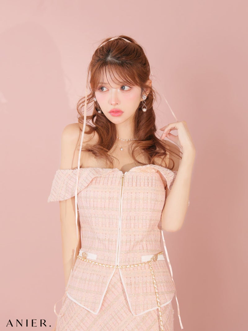 普段のドレスとしても着用できる♡ [ANIER./アニエル] 高級 ブランド タイトミニドレス バニー コスプレ オフショル ツイード ジップ [ドレス/カチューシャ/チェーンベルト]