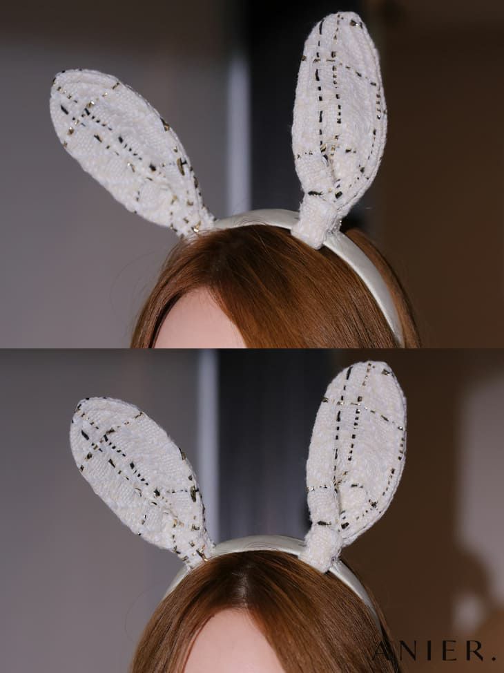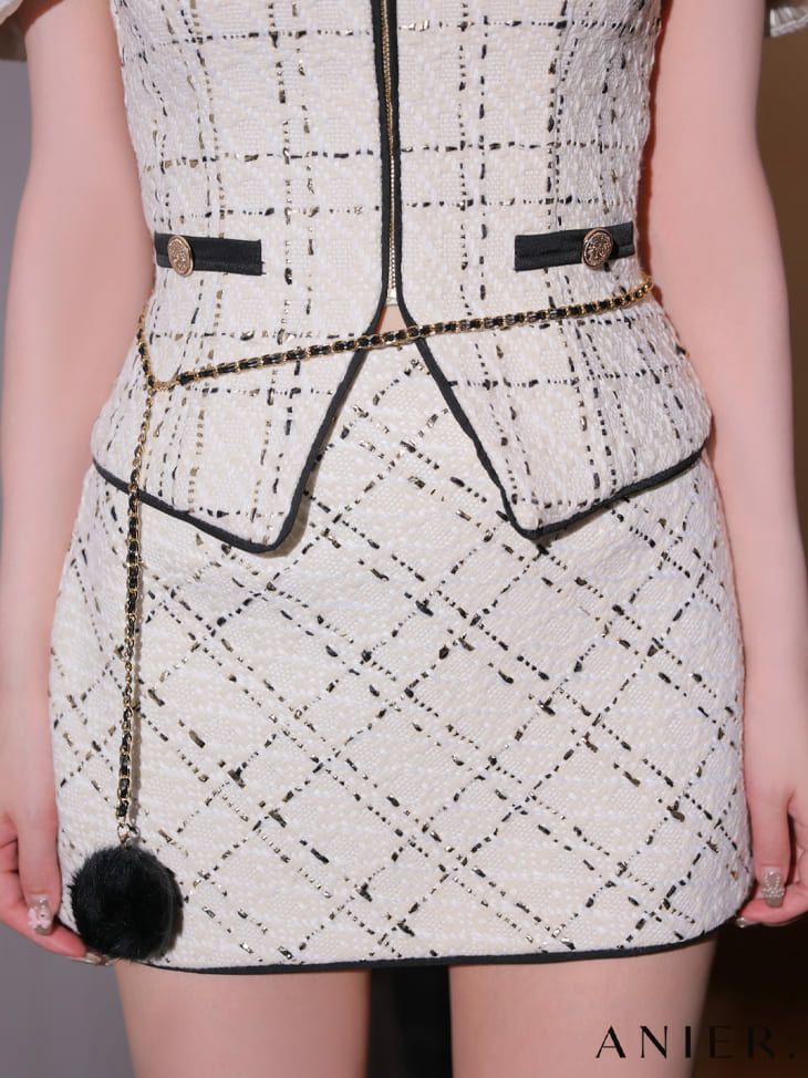 4. [ANIER./アニエル] 高級 ブランド タイトミニドレス バニー コスプレ オフショル ツイード ジップ [ドレス/カチューシャ/チェーンベルト]
