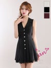 4. [an/アン] 高級 ノースリーブ フレアミニドレス 襟付き プリーツ フリル バストカット