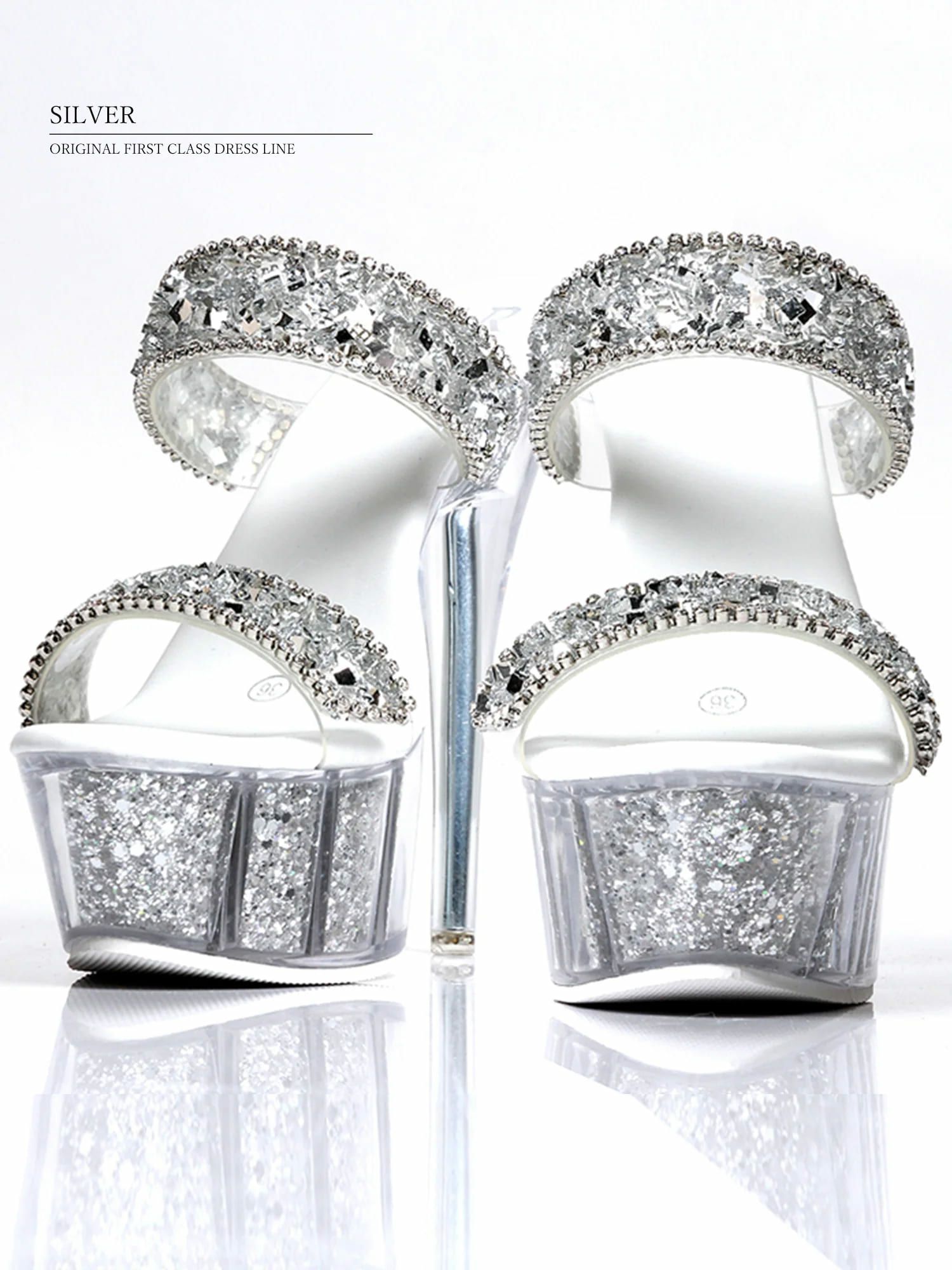 他の画像を見る 17cmヒール☆クリア感あり!足元が輝く☆ [Angel-R/エンジェルアール] 高級シングルビジューラメクリア厚底サンダルオープントゥハイヒール ¥ 13,200 税込 お気に入りに追加