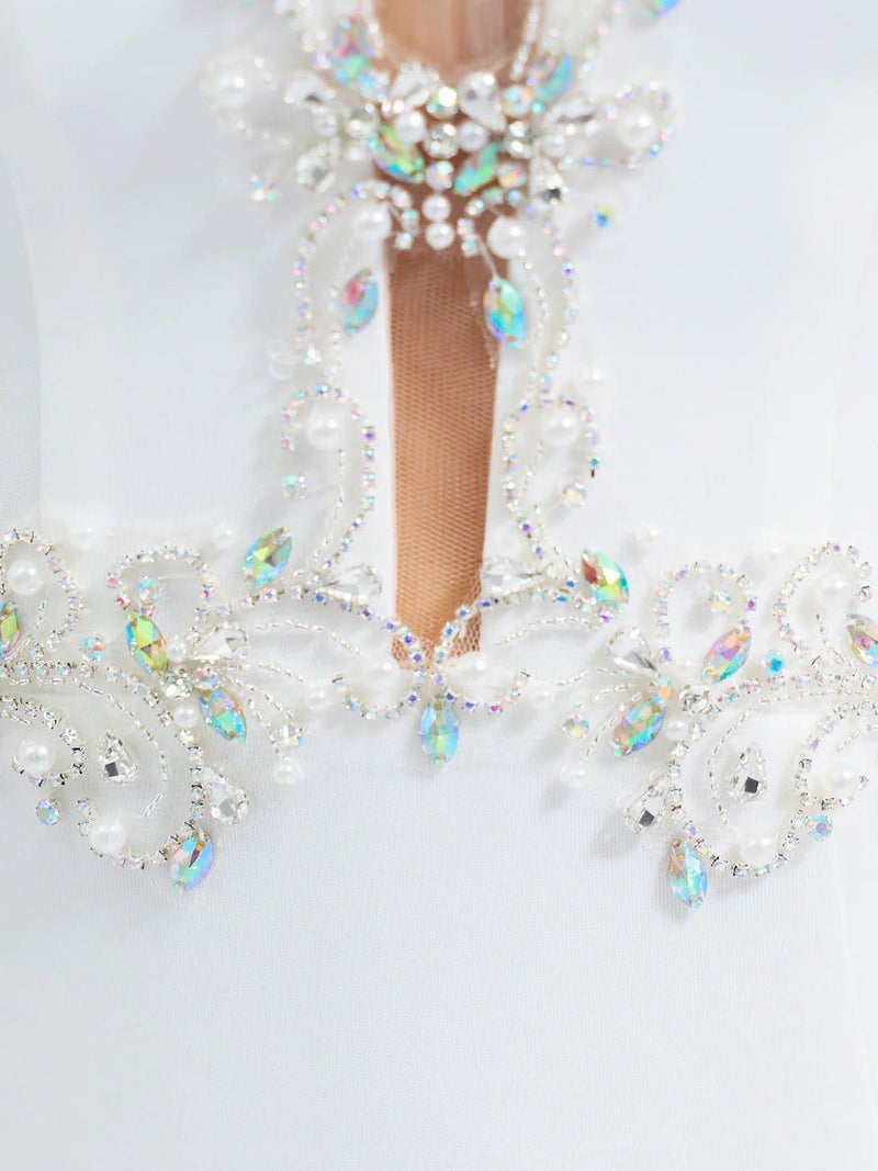 4. [Angel-R/エンジェルアール] 高級 ノースリーブ フラワービジュー パール バストシースルー ゴージャス 谷間魅せ タイトロングドレス